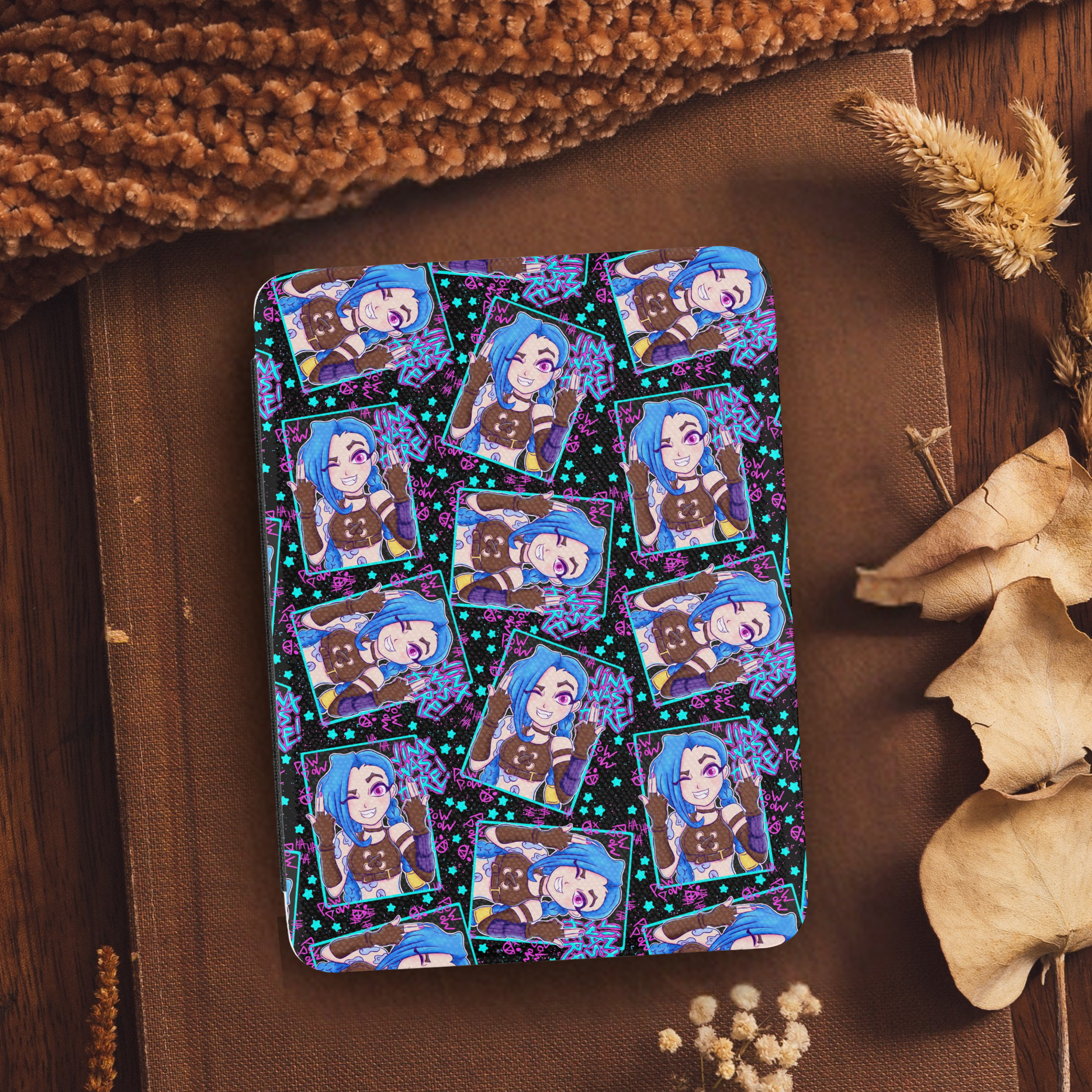 Arcane Jinx Cartoon Leather Kindle Case with Hand Strap