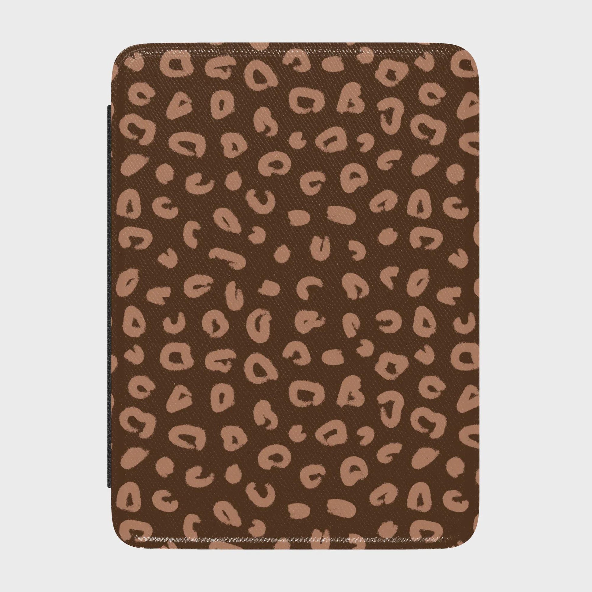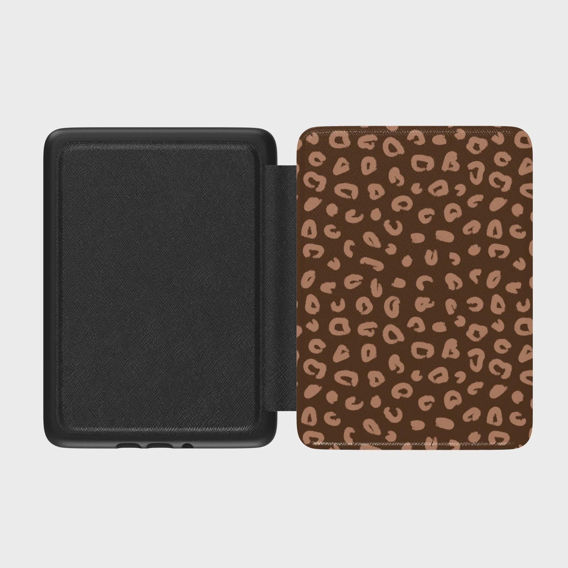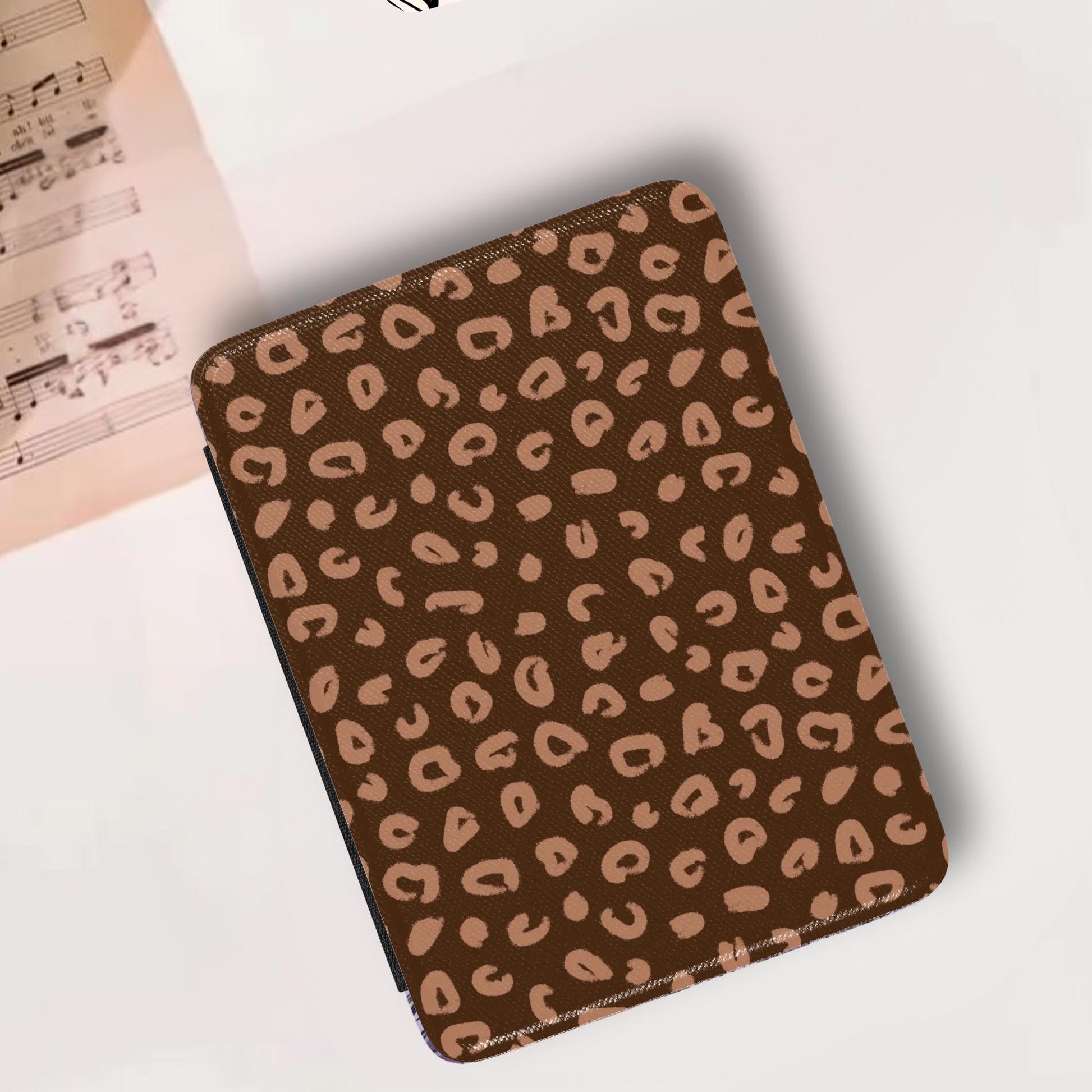 Cheetah Print Kindle Case for 2024 Kindle Paperwhite® 7" (12th Gen) & Signature Models. Crafted with a satin-finish Saffiano leatherette front, this durable, lightweight case features a secure strap, auto wake/sleep function, and sleek black spine. Stylish protection with a high-end look—perfect for daily use.