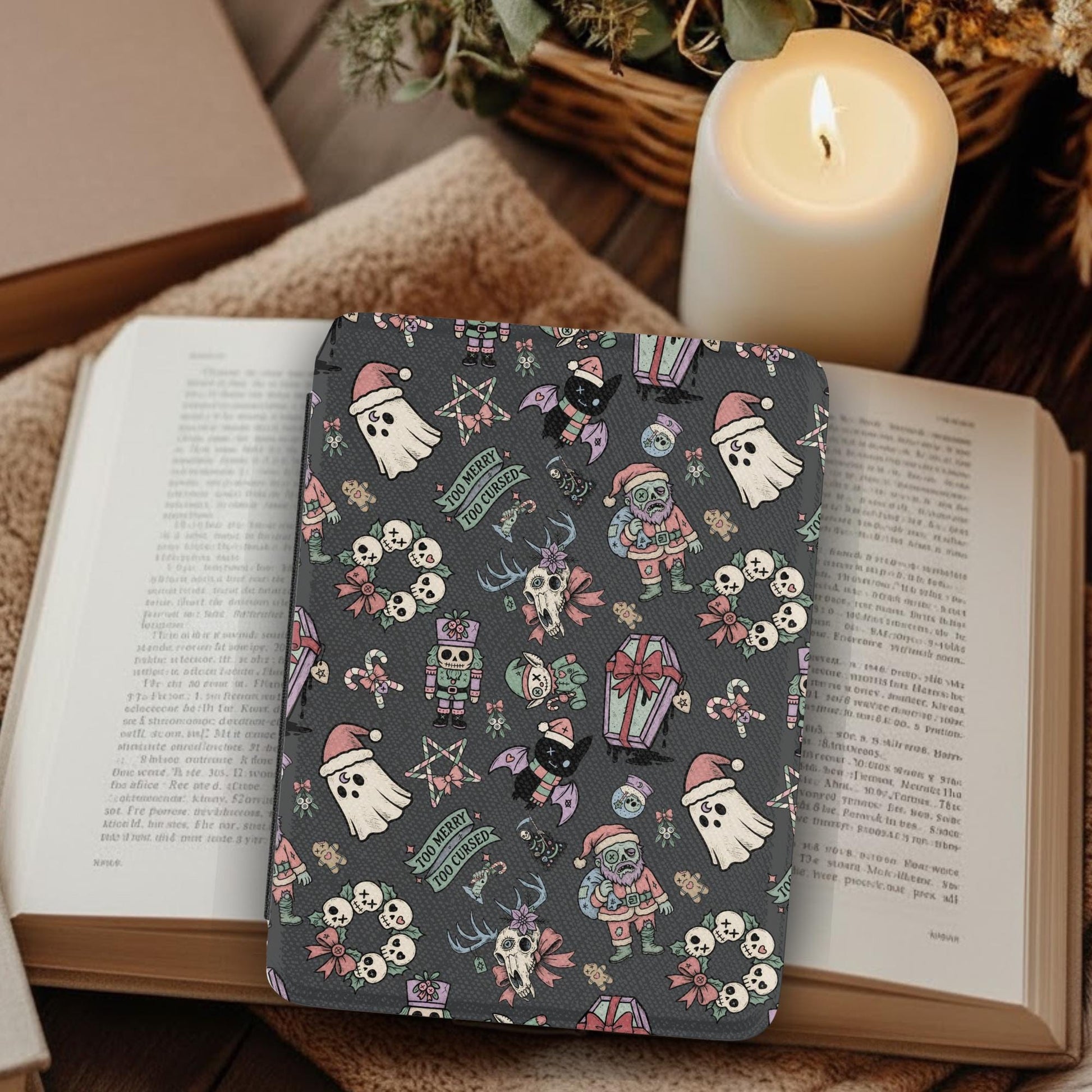 Creepy Christmas Kindle Case for 2024 Kindle Paperwhite® 7" (12th Gen) & Signature Models. Crafted with a satin-finish Saffiano leatherette front, this durable, lightweight case features a secure strap, auto wake/sleep function, and sleek black spine. Stylish protection with a high-end look—perfect for daily use.