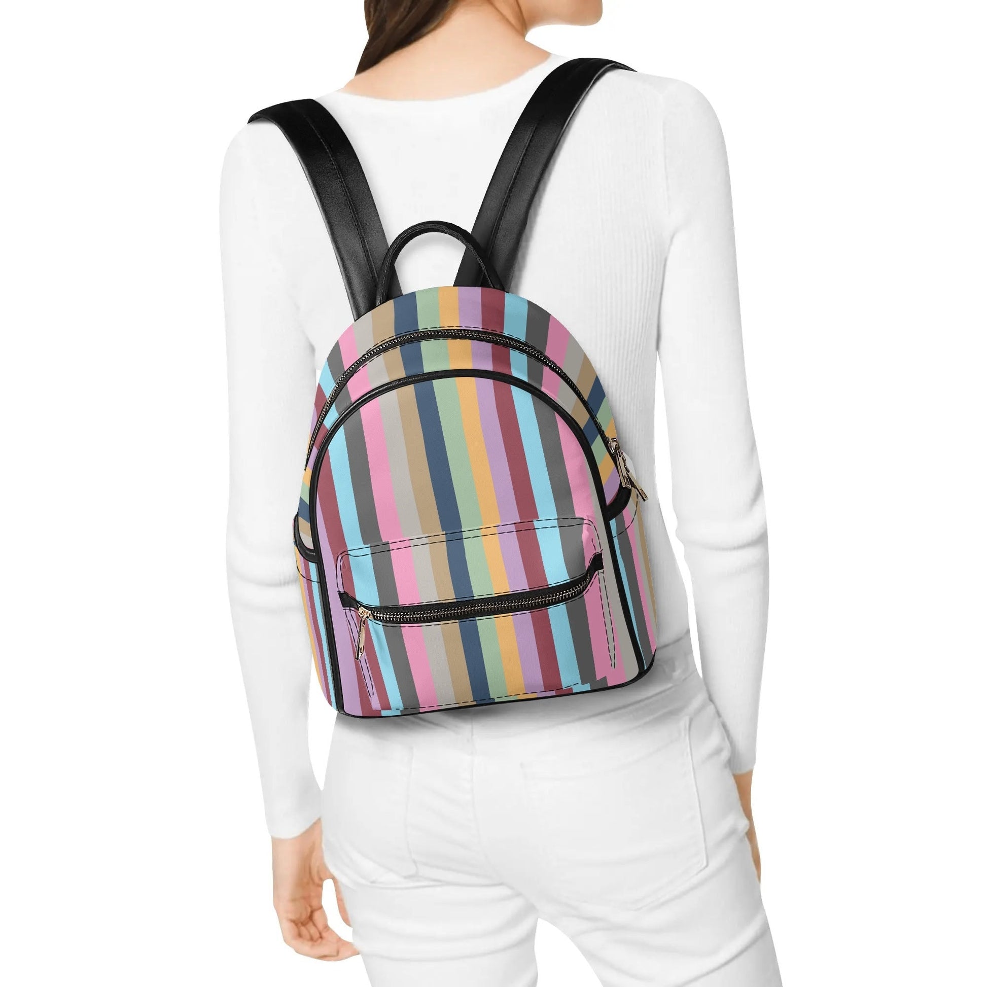 Enhance your style with this durable Eras Stripes Swiftie Mini Leather Backpack. It features a spacious main compartment, side zipper pockets, a metal-zippered garment pocket, and an easy-access front pocket. Adjustable straps ensure all-day comfort—perfect for work, travel, or casual outings!