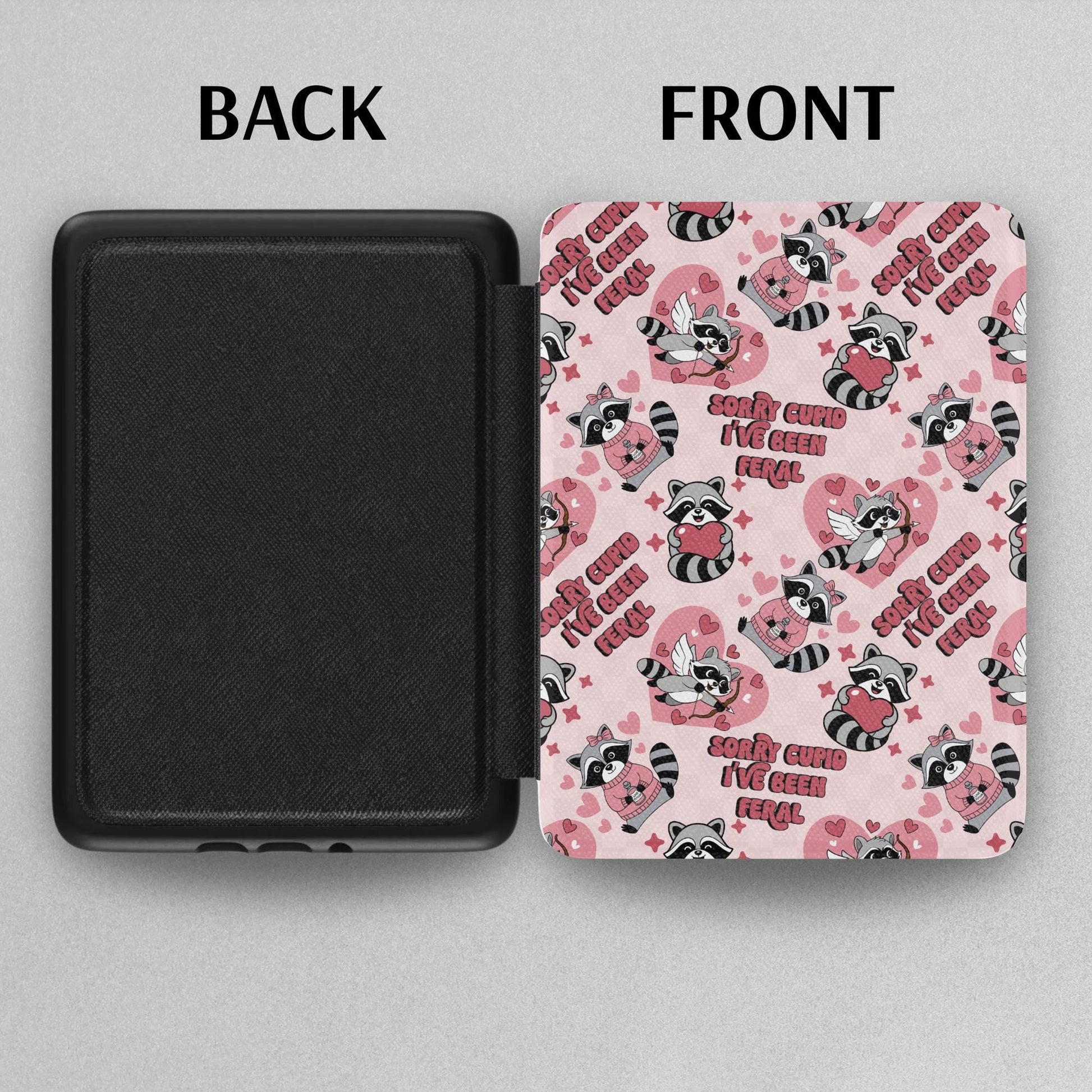 Feral Raccoon Valentine Kindle Case for 2024 Kindle Paperwhite® 7" (12th Gen) & Signature Models. Crafted with a satin-finish Saffiano leatherette front, this durable, lightweight case features a secure strap, auto wake/sleep function, and sleek black spine. Stylish protection with a high-end look—perfect for daily use.