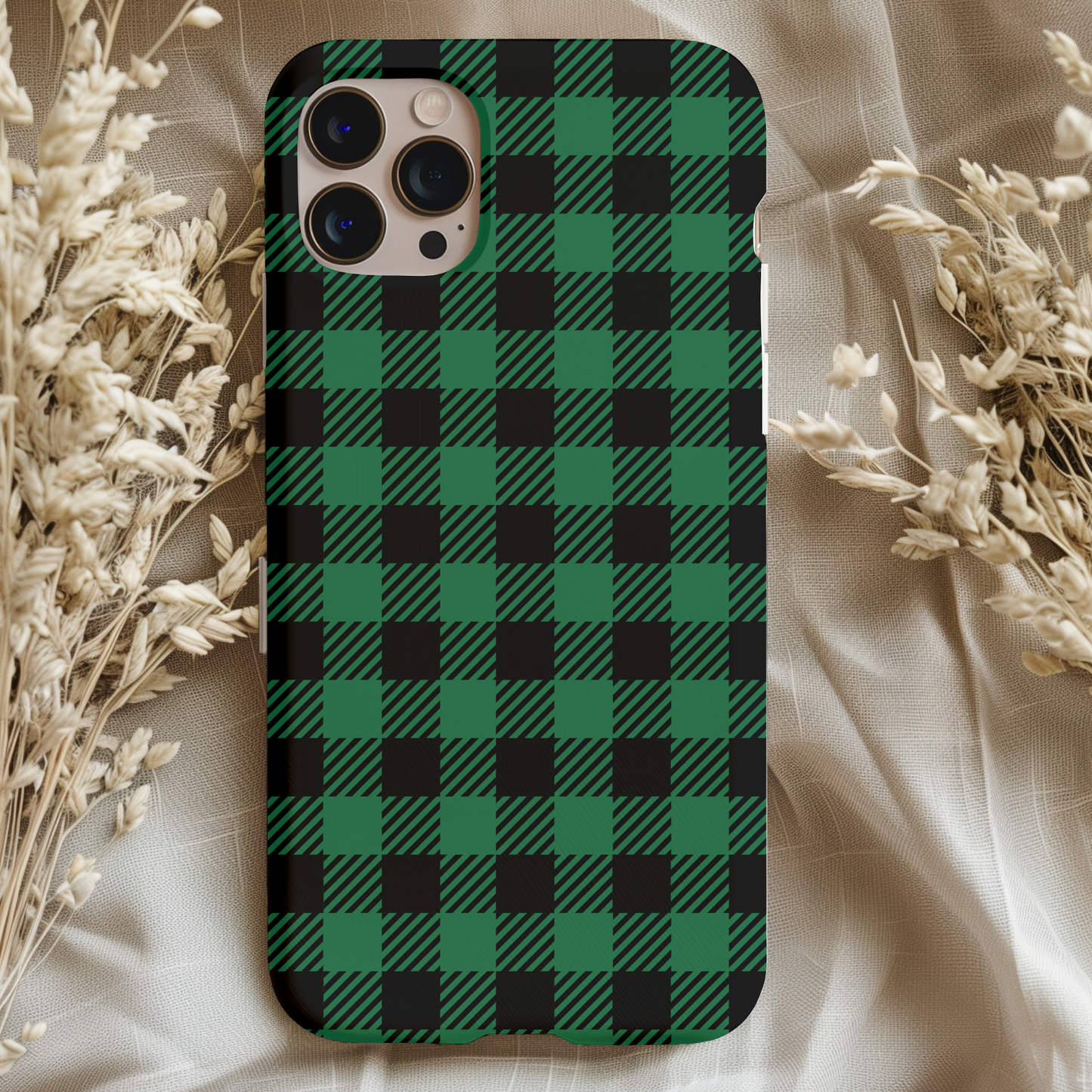 Show off your style with this Green Buffalo Plaid Phone Case. This dual-layer tough case features a striking design that blends beauty with durability. Beneath its chic exterior lies a shock-absorbing inner core and a rugged outer shell, offering a secure grip and raised edges to protect your screen and camera through every adventure.