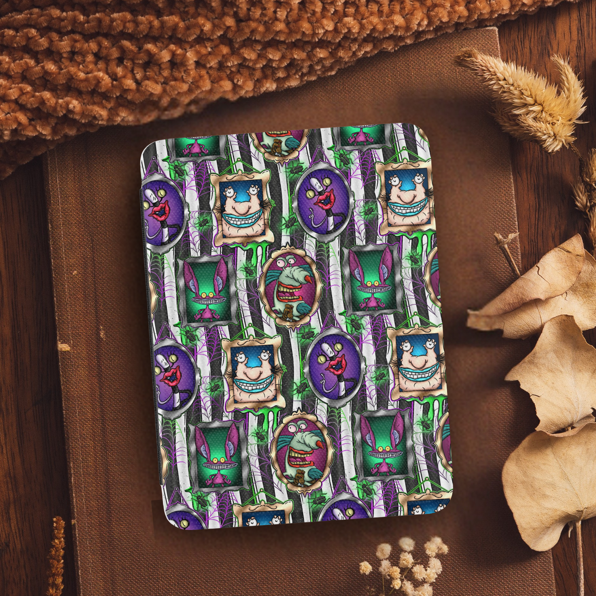 Nostalgic Ahh Real Monsters Kindle Case for 2024 Kindle Paperwhite® 7" (12th Gen) & Signature Models. Crafted with a satin-finish Saffiano leatherette front, this durable, lightweight case features a secure strap, auto wake/sleep function, and sleek black spine. Stylish protection with a high-end look—perfect for daily use.