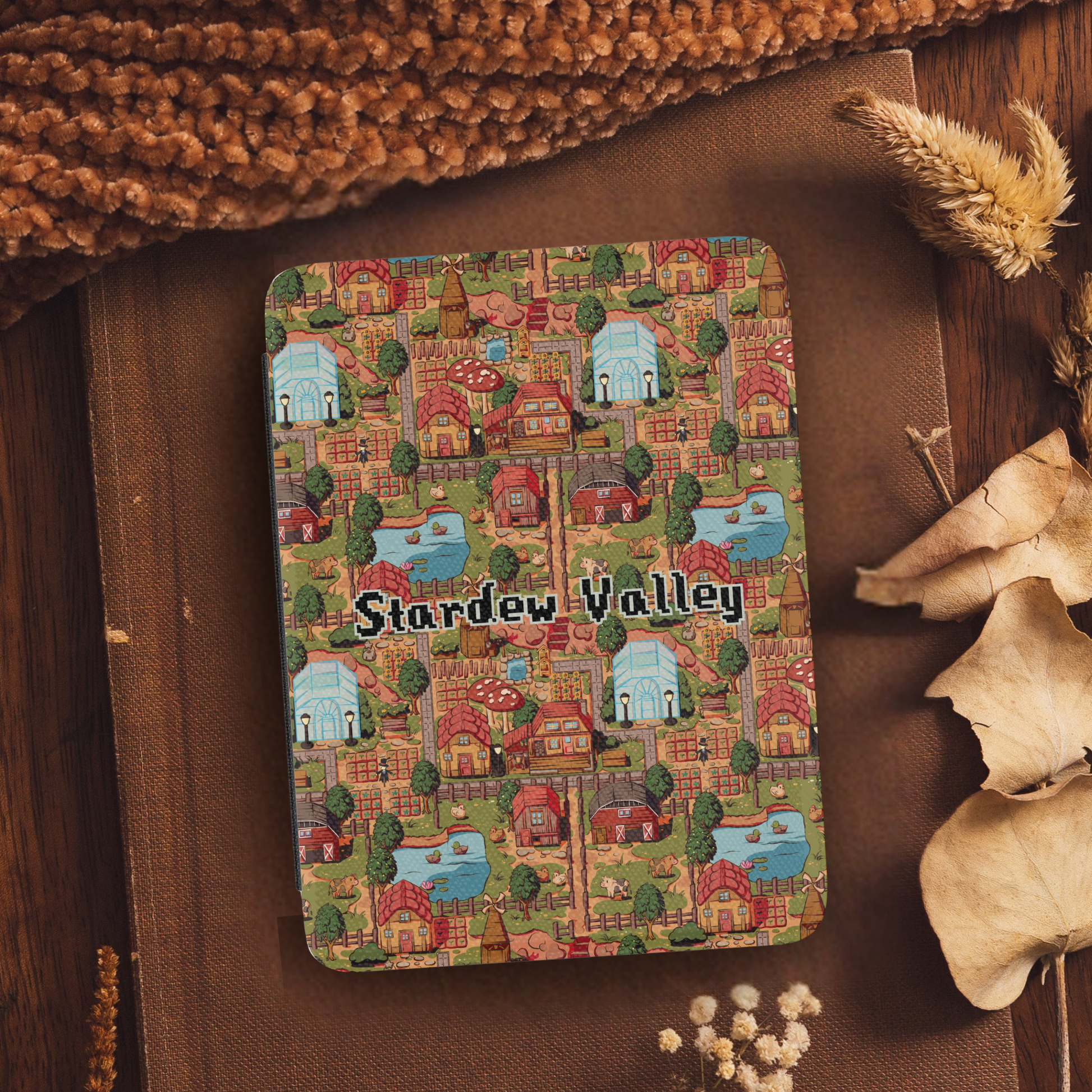Stardew Valley Farm Kindle Case for 2024 Kindle Paperwhite® 7" (12th Gen) & Signature Models. Crafted with a satin-finish Saffiano leatherette front, this durable, lightweight case features a secure strap, auto wake/sleep function, and sleek black spine. Stylish protection with a high-end look—perfect for daily use.