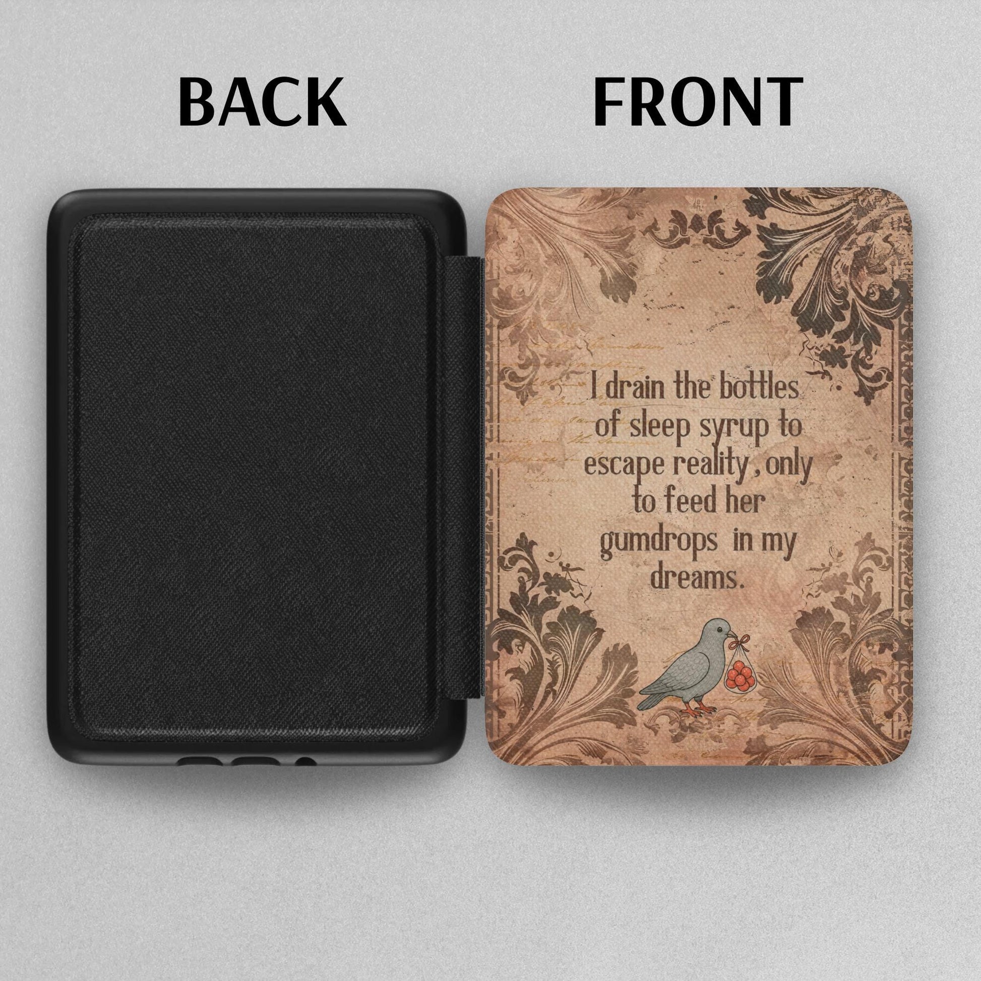 Sunrise on the Reaping Haymitch Red Gumdrop Kindle Case for 2024 Kindle Paperwhite® 7" (12th Gen) & Signature Models. Crafted with a satin-finish Saffiano leatherette front, this durable, lightweight case features a secure strap, auto wake/sleep function, and sleek black spine. Stylish protection with a high-end look—perfect for daily use.