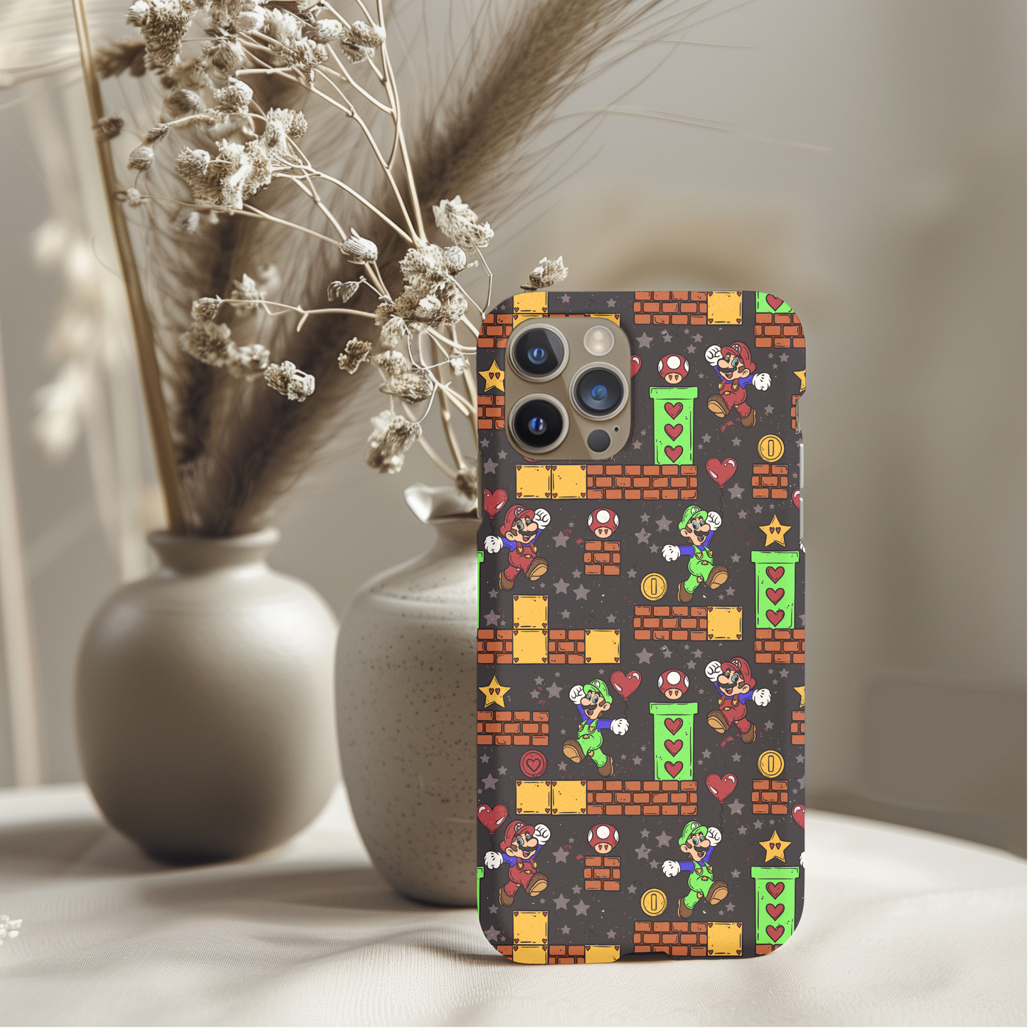 Show off your style with this Super Mario Love Phone Case. This dual-layer tough case features a striking design that blends beauty with durability. Beneath its chic exterior lies a shock-absorbing inner core and a rugged outer shell, offering a secure grip and raised edges to protect your screen and camera through every adventure.