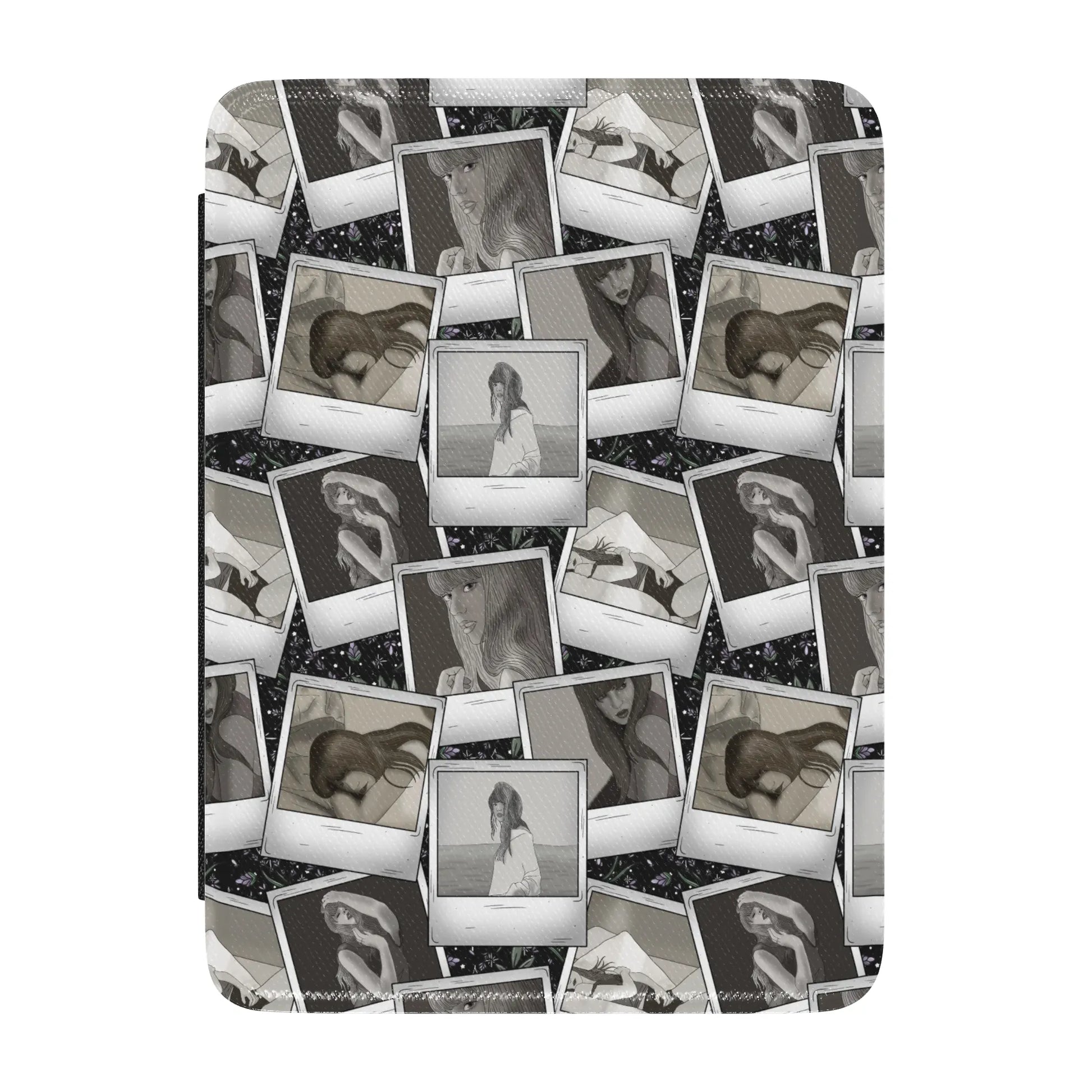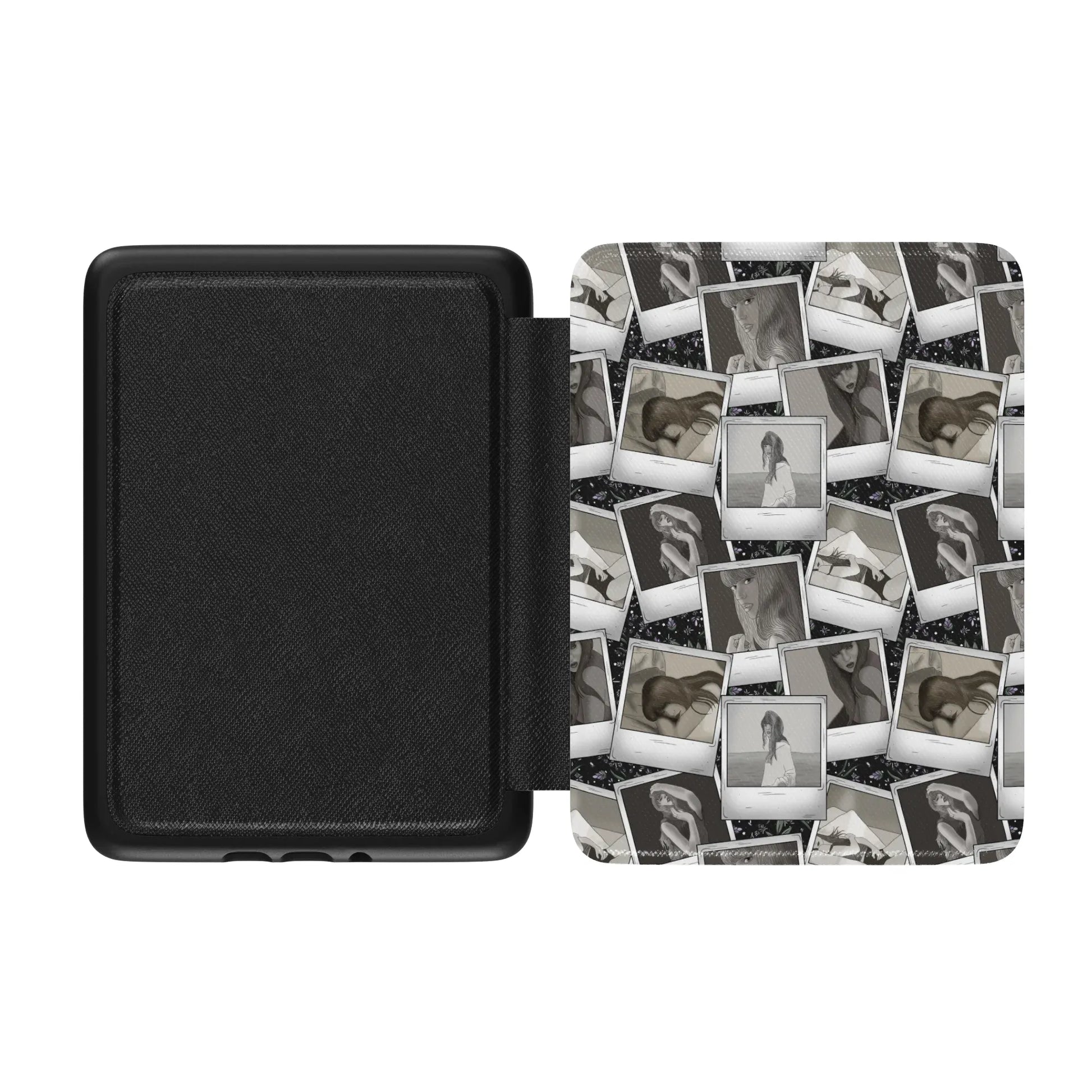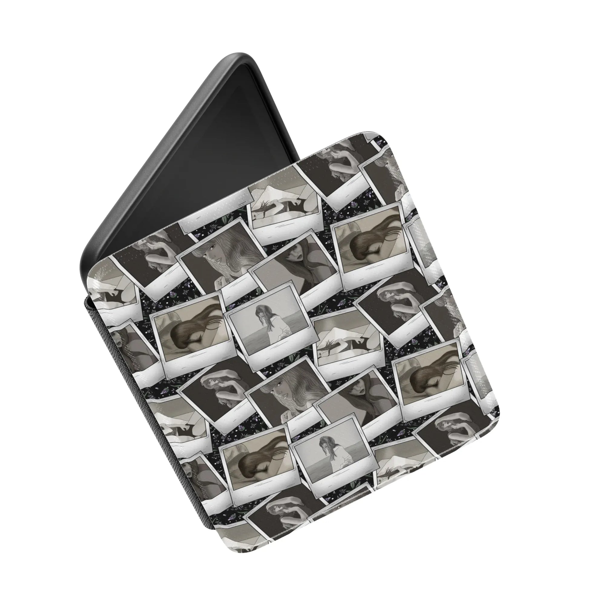 Swiftie Tortured Poet Polaroid Kindle Case for 2024 Kindle Paperwhite® 7" (12th Gen) & Signature Models. Crafted with a satin-finish Saffiano leatherette front, this durable, lightweight case features a secure strap, auto wake/sleep function, and sleek black spine. Stylish protection with a high-end look—perfect for daily use.
