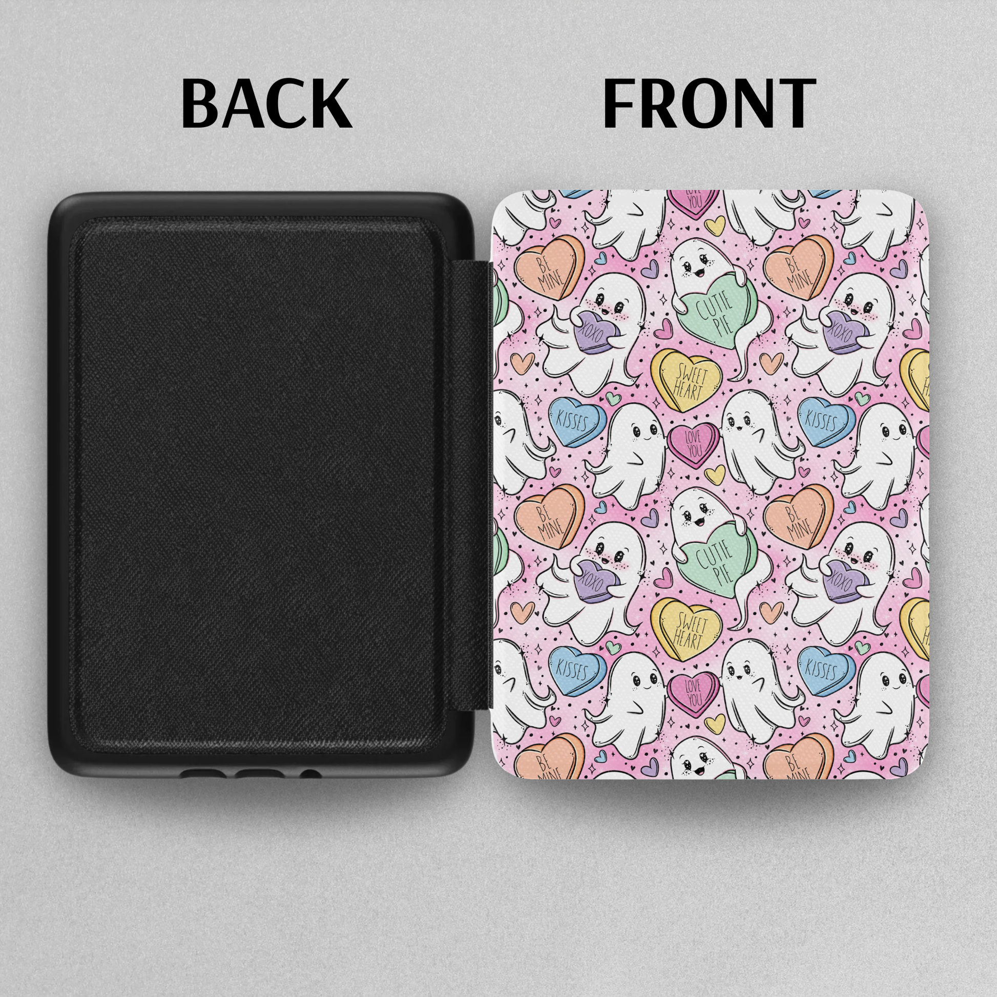 Valentine's Love Ghost Kindle Case for 2024 Kindle Paperwhite® 7" (12th Gen) & Signature Models. Crafted with a satin-finish Saffiano leatherette front, this durable, lightweight case features a secure strap, auto wake/sleep function, and sleek black spine. Stylish protection with a high-end look—perfect for daily use.