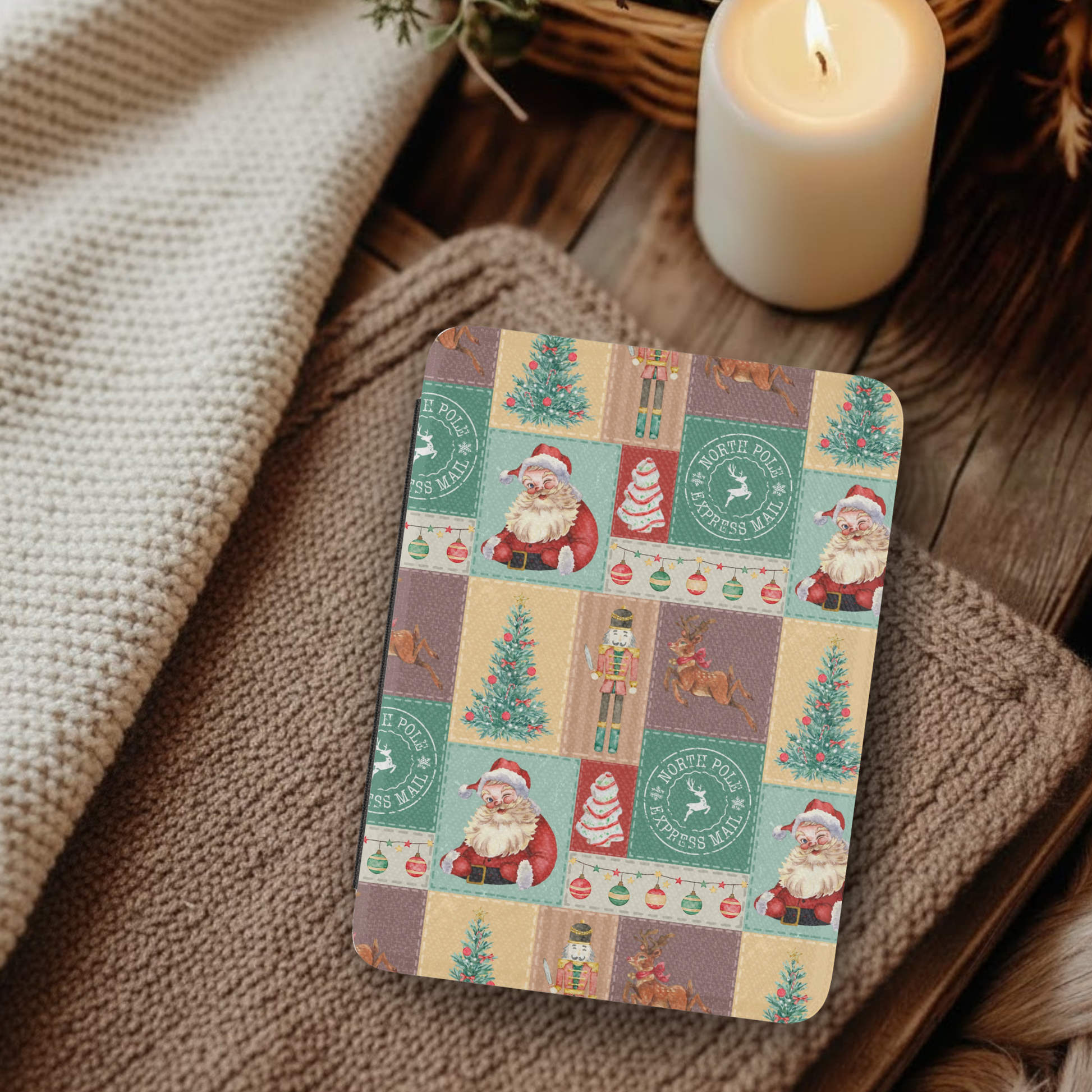 Vintage Christmas Patchwork Leather Kindle Case with Hand Strap