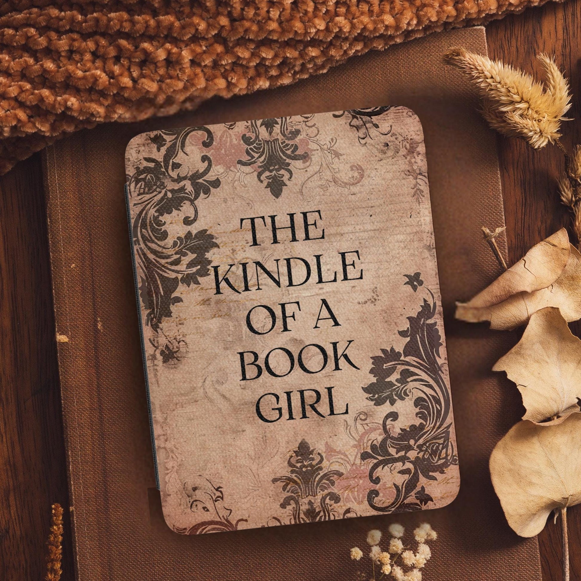 Vintage Kindle of a Book Girl Showgirl Kindle Case for 2024 Kindle Paperwhite® 7" (12th Gen) & Signature Models. Crafted with a satin-finish Saffiano leatherette front, this durable, lightweight case features a secure strap, auto wake/sleep function, and sleek black spine. Stylish protection with a high-end look—perfect for daily use.
